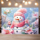 Send warm holiday greetings with this charming card featuring a cheerful snowman bundled in a pink scarf, surrounded by lovely pink poinsettias. The sweet message "Frosty Wishes and Poinsettia Kisses" adds a whimsical and festive touch, perfect for spreading joy to friends and family this Christmas season.