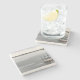 The coasters are gorgeous, a quality feel and heavy weight. They look like a precious archeological find. A rustic stone juxtaposed with a modern floral black and white print. I like the way the print goes slightly imperfect on the cut stone edges giving them a kind-of natural beauty.