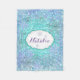 Frozen snowflake fleece blanket with pretty teal blue snowflakes on a beautiful purple and teal blue winter wonderland frozen teal blue glitter snowflake background and monogram name plaque in the centre. You can easily customise this adorable frozen snowflake blanket by adding a name or text in the font style and colour of your choice. You can also move the snowflakes as needed to accomodate your text.