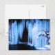 A photograph of a frozen waterfall, it is a very peaceful scene. The blue and white colours ae amazing!