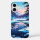 Minimalist anime phone case featuring a tranquil frozen lake surrounded by snowy trees and a soft pastel sky. Perfect for serene winter landscapes.