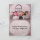 I customised this card for my Mum for Mother's day. Such a simple, yet elegant looking card. I love how easy is it to personalise it. Arrived within a good time frame and on time. My Mum loved it. We live on the other side of the world so it's lovely to be able to send something special with a personal touch. I've used zazzle for a long as I know now and I highly recommend if you want to send a specially customisable card to a loved one or friend. Great quality. Perfect