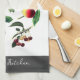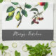 Classic style fruit art is ready to personalise with your own text on this kitchen towel. White on back side.
