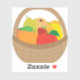 A vector art of a basket full of fruits. The fruits consist of orange, peach, pear, grapes, mango, banana, strawberry and apple.