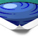 An abstract artwork of blueberry-like forms flowing through soft green and deep blue waves.