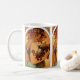 White mug with Alphonse Mucha's "Fruit" artwork.