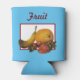 You can change the background colour and change the text on this can insulator sleeve. The image is derived from my original acrylic painting, Fruit.