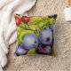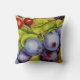 Fine art pillow featuring wild plums, blackberries and rosehips. "Fruit from the Hedgerow" print is taken from an original artwork on hot press paper in watercolor by Sarah Trett. Fruit print cushion to bring a touch of the outside in to a living room or family room or kitchen.