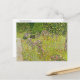 A fine art postcard with the painting, Fruit Garden with Roses (c. 1911), by Gustav Klimt (1862-1918), an Austrian artist from the Art Nouveau Period. A rose garden landscape with apple trees in the background.