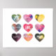 Bright watercolor splashed hearts each carry the words in the scripture in Galatians 5:22-23.
