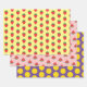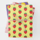 Bright lemon slice pattern on a solid purple background. Fun watermelon slice pattern on a pink background. Red strawberry pattern on a yellow background. Great all around occasion paper to have on hand.