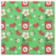Fruit print strawberry flowers jam green fabric