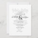This wedding invitation features a pale, fruit tree branch, with an elegant typography overlay, with contrasting classic serif typography and script calligraphy style type.