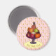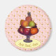 Cute magnet with fruits and polka dots in gold and pink colours on light pink background. Below the fruit bowl there is a customisable text: "Best Food Ever".