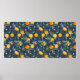 Fruits oranges with tropical leaves and flowers on poster