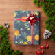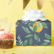 Fruits oranges with tropical leaves and flowers on wrapping paper