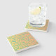 The coasters are gorgeous, a quality feel and heavy weight. They look like a precious archeological find. A rustic stone juxtaposed with a modern floral black and white print. I like the way the print goes slightly imperfect on the cut stone edges giving them a kind-of natural beauty.