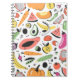 Fruits, vegetables hand drawn pattern. notebook