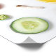 This design features a large collage of colourful fruits and vegetables.