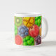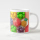 "Adorable honeycomb pattern arranged in a rectangular shape, each hexagonal cell containing a different realistic fruit illustration, colourful and vibrant fruits (strawberry, orange, kiwi, mango, blueberry, watermelon, pineapple, grapes), soft pastel background, dreamy and cute aesthetic, highly detailed, close-up view, 3D realistic texture, ultra high resolution"