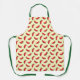 Apron featuring a summery fruity pattern of partly eaten red watermelons against a light yellow background.