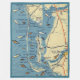 A colourfully illustrated vintage map of the Ft. Myers Florida area reproduced on a throw blanket.