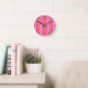 Fuchsia and living coral five stripes pattern round clock