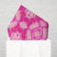 Tissue paper in a tie dye pattern in shades of deep fuchsia pink, orchid, and pastel pink, accented with soft violet