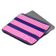 Fuchsia and white five stripes pattern with blue laptop sleeve