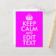 Fuchsia and White Keep Calm and Edit Text Postcard