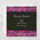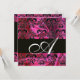 FUCHSIA BLACK SILK DAMASK CLOTH MONOGRAM , white Invitation