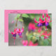 Postcard featuring lovely purple and pink fuchsia blossoms hanging down like raindrops. Beautiful card for flowers and garden lovers. Photo taken in Mendocino, California.