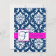 Save the Date Cards with Blue and White Damask Pattern, Monogram, and Names with Fuchsia Pink accents. Portrait Layout. Design by Elke Clarke ©2009. Graphics licensed for use. Customise with your monogram, names and wedding announcement information. Also, choose from a variety of fonts and beautiful papers to make your save the date cards FABULOUS! Then use the same design for your wedding invitations. Contact us for alterations in colours.