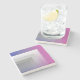The coasters are gorgeous, a quality feel and heavy weight. They look like a precious archeological find. A rustic stone juxtaposed with a modern floral black and white print. I like the way the print goes slightly imperfect on the cut stone edges giving them a kind-of natural beauty.