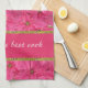 Fuchsia coloured poinsettias, floral pattern custo tea towel