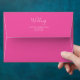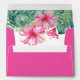 These elegant yet simple wedding envelopes feature the word "Wedding" in white over a vibrant fuchsia pink background. The envelope opens to reveal a tropical watercolor hibiscus flower floral design. Use the template fields to add your custom return address. A botanical choice for garden weddings. To see the matching suite visit www.zazzle.com/dotellabelle