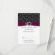 Fuchsia damask FAUX ribbon diamante Wedding RSVP Card