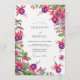 This design features vibrant fuchsia and deep purple blossoms cascading across the composition. The lush botanical elements create an opulent and romantic atmosphere, perfect for a spring or summer occasion. The detailed watercolor style brings a delicate, artistic touch.