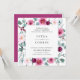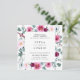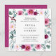 Elegant watercolor botanical flowers and foliage in trendy shades of fuchsia, blush and green, wedding invitation. Back of card features solid fuchsia red colour. Customise text, font style, colour and size.