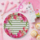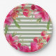 Fuchsia Floral Green Stripes Graduation Party Paper Plate