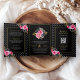 Fuchsia Gold Floral Roses All in One Black Wedding Tri-Fold Invitation