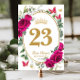 Personalize this elegant fuchsia pink floral table number sign easily and quickly. Simply click the customize it further button to edit the texts, change fonts and fonts colors. Featuring vibrant fuchsia pink rose flowers, a princess crown and gold and red butterflies. Perfect for Quinceañera, Sweet 16, 18th birthday, debutante ball, bridal shower, birthday party and more occasions.