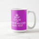 Fuchsia KeepCalm mugs | Personalizable template. Cute gift idea for men and women. Customise background colours ie pink. Create your own funny KeepCalmandCarryOn parody. Simply edit the text of this template to make a unique design. Popular quotes: Keep calm and party on. Keep calm and love me. Keep calm and drink coffee. Personalised mugs are a great gift idea for friends and family.