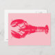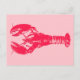 Postcard in a digital sketch of a Lobster in deep fuchsia pink on a pastel coral pink background