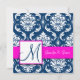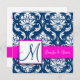 Fuchsia Navy Blue Damask Monogram Invitation