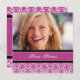 Custom Photo 16th Birthday party invitations in elegant bright fuchsia pink, black and white classic floral damask pattern. Add your name, photo, and party details for a unique and stylish sweet 16 birthday party invitation.