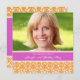 Custom Photo 50th Birthday party invitations in elegant bright fuchsia pink, tangerine orange and white classic floral damask pattern. Add your name, photo, and party details for a unique and stylish 50th birthday party invitation.