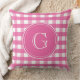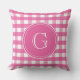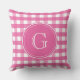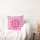 Sweet bright pink and white gingham style pattern is the background for a big monogram initial. Both sides are identical, so you only need to add the initial once. Stylish design is great for a sun porch, bedroom or living room especially. Maybe a dorm room, too! Timeless checked pattern works with other geometric designs. Available in several colours.