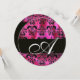 FUCHSIA PINK BLACK DAMASK CLOTH MONOGRAM Circle Invitation