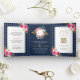 Fuchsia Pink Floral All in One Crest Navy Wedding Tri-Fold Invitation